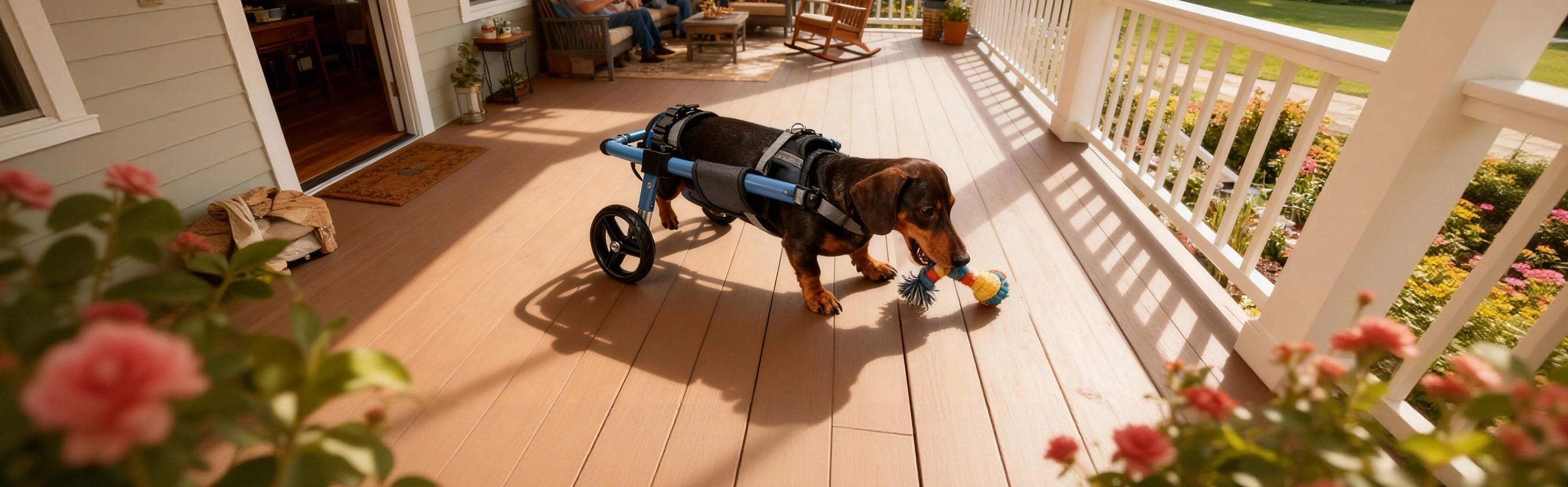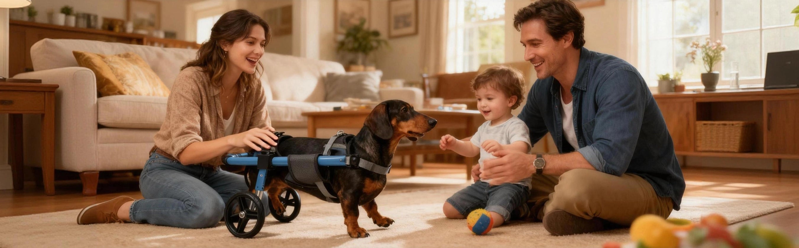 Encourage play while your dog wears the wheelchair. When they can enjoy their favorite toys and activities, the wheelchair becomes part of their happy routine.